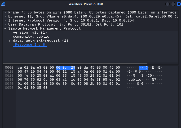 This section explores security vulnerabilities in SNMP, specifically within versions SNMPv1 and SNMPv2c, which are widely used but inherently insecure due to lack of encryption and authentication. In a real-world setting, these weaknesses can be exploited to gain unauthorized access to sensitive network information or to launch more advanced attacks. The following subsections demonstrate how attackers can eavesdrop on SNMP traffic and perform brute force attacks to discover community strings.