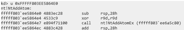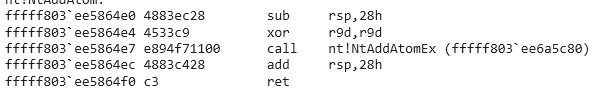 pNtAddAtom triggerNtAddAtom = (pNtAddAtom)GetProcAddress(hNtdll, "NtAddAtom");
