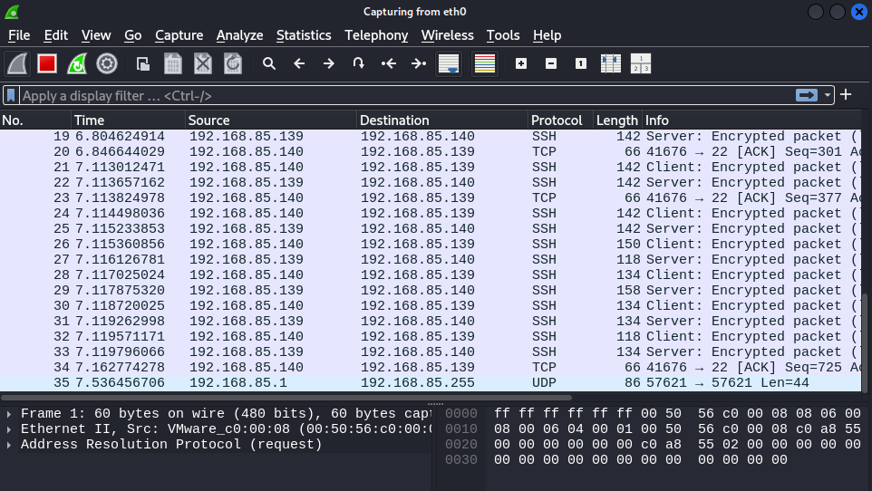 In a real-world scenario, an attacker may attempt to capture traffic between the client and the server using a packet sniffer (like Wireshark). However, since SFTP uses SSH encryption, the captured packets will be unreadable, ensuring the confidentiality of the communication.