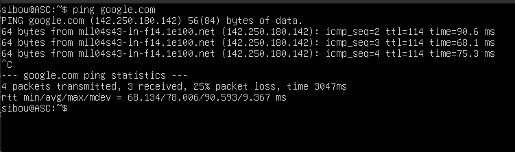 Figure 3.2: connectivity test (Ping) validating Internet access from an agent.
