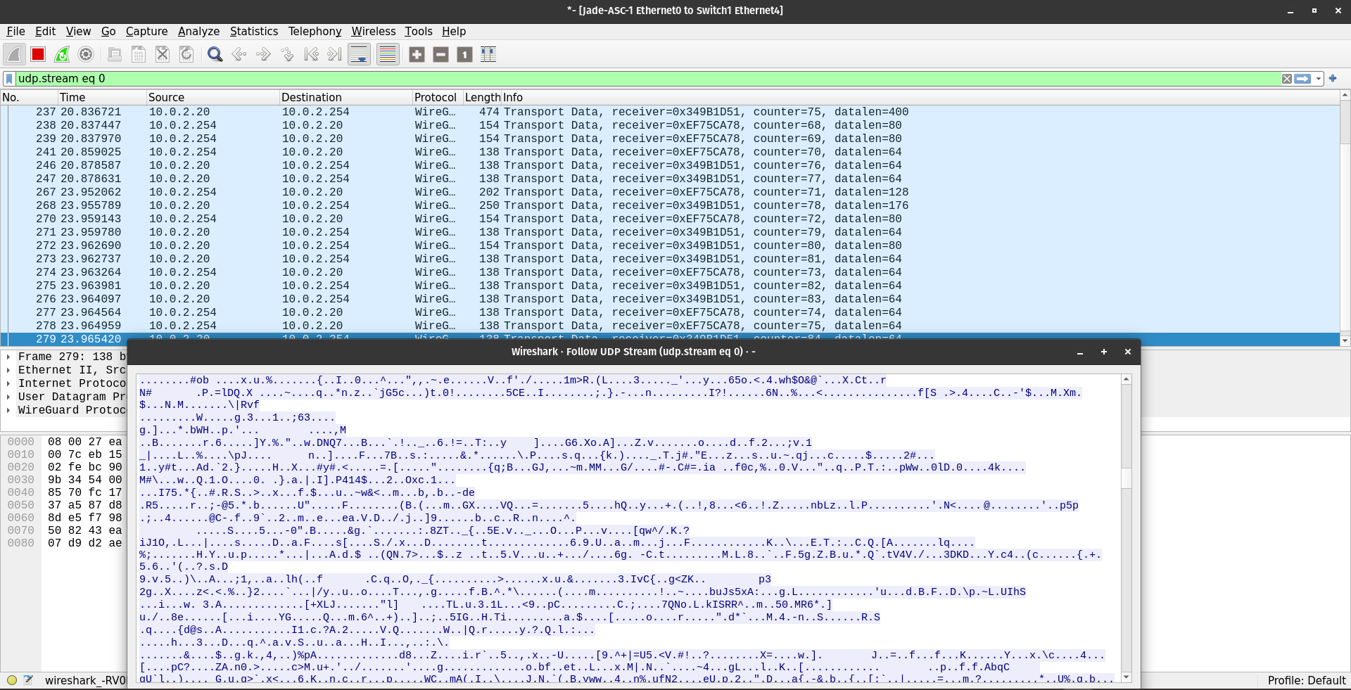 Figure 7.2: capture showing encrypted WireGuard traffic.