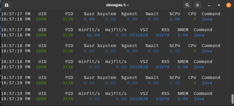 Verification Command: To demonstrate this low overhead, we used pidstat to isolate the Java Agent process: