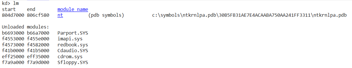 To uncover the mechanism of this stealth, we transition to Kernel Debugging (WinDbg). Upon loading the modules we find our first roadblock: