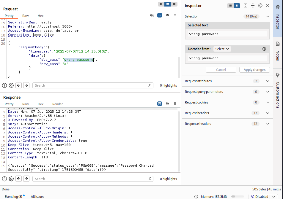 While reviewing the password update functionality, I discovered a critical vulnerability: the application does not verify the correctness of the current password before allowing a user to update it.