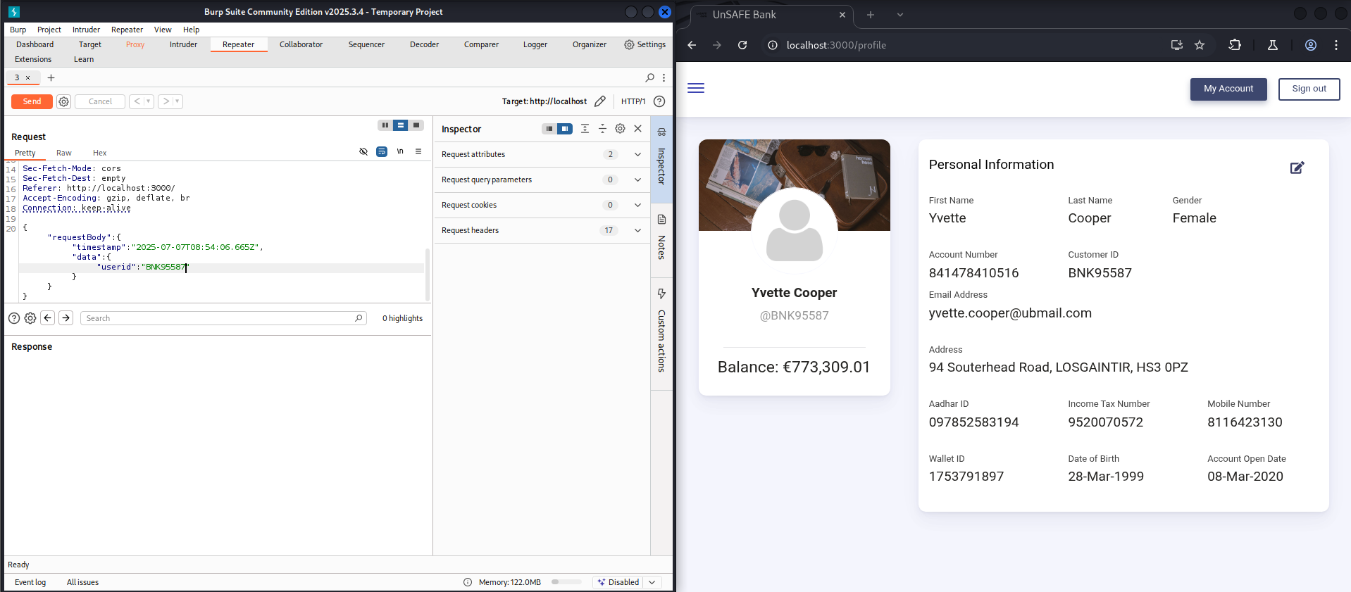 This flaw allows unauthorized access to any user’s account details simply by modifying the userid value in the JSON request.