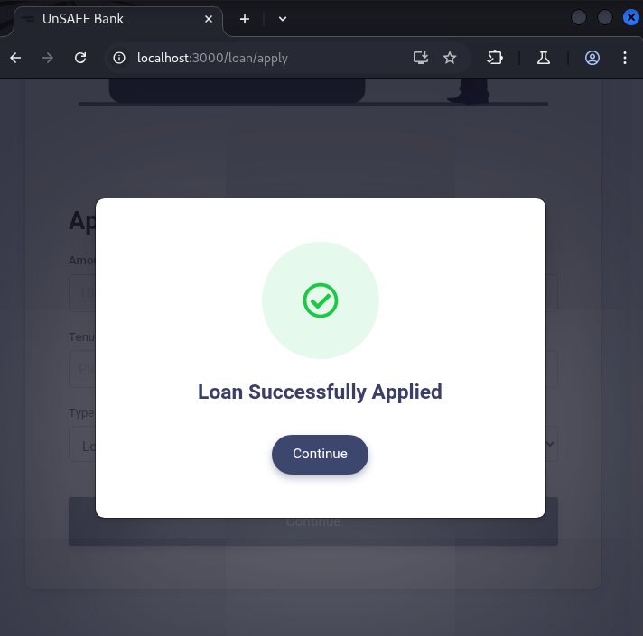 I then replaced the original Base64 string in the loan request with this new one using Burp Suite, submitted the modified request, and got a success response—no errors, no rejections.